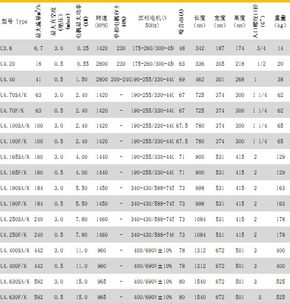 U油润滑转盘真空泵参数列表: